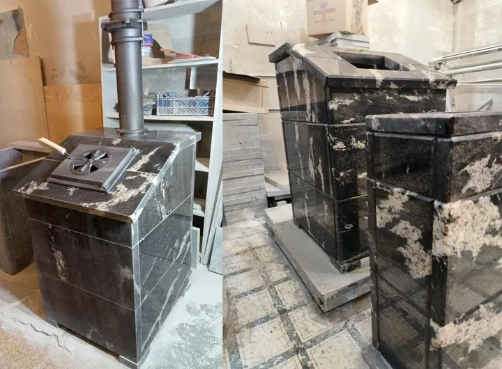- Собственное производство керамических дымоходов, каминных облицовок из мрамора, теплонакопительных облицовок и порталов для банных печей, модульные барбекю.