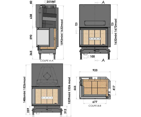 Модели топок отличаются по размерам и форме, функциональным возможностям, материалам. Они выполняются из чугуна, шамота, стали, чугун+сталь, сталь+шамот, специальной стали, выдерживающей очень высокие температуры. Топка может быть оборудована вентилятором, распределительным кожухом, на нее иногда наносится латунное покрытие. Количество и расположение стекол варьируется. Дверца открывается вбок, вбок и вверх.